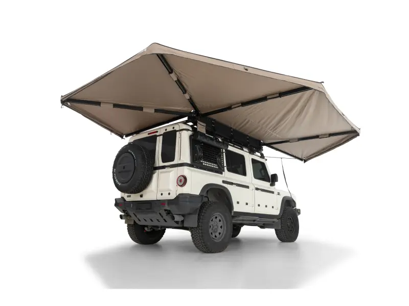 Pensé pour les passionnés de Vanlife, de 4x4 tout-terrain et les professionnels en déplacement, l'auvent Rhino-Rack Batwing 270° autoportant version côté droit combine modularité, protection et autonomie. Sans piquet extérieur requis, il se déploie en quelques instants pour couvrir 270° autour du véhicule et offrir une surface de 12,3 m², avec une extension jusqu'à 2 mètres au-delà de la carrosserie. Son tissu polycoton ripstop 280 g/m², imperméable (2000 mm) et certifié UPF50+, garantit une protection optimale face aux aléas climatiques en tout environnement.