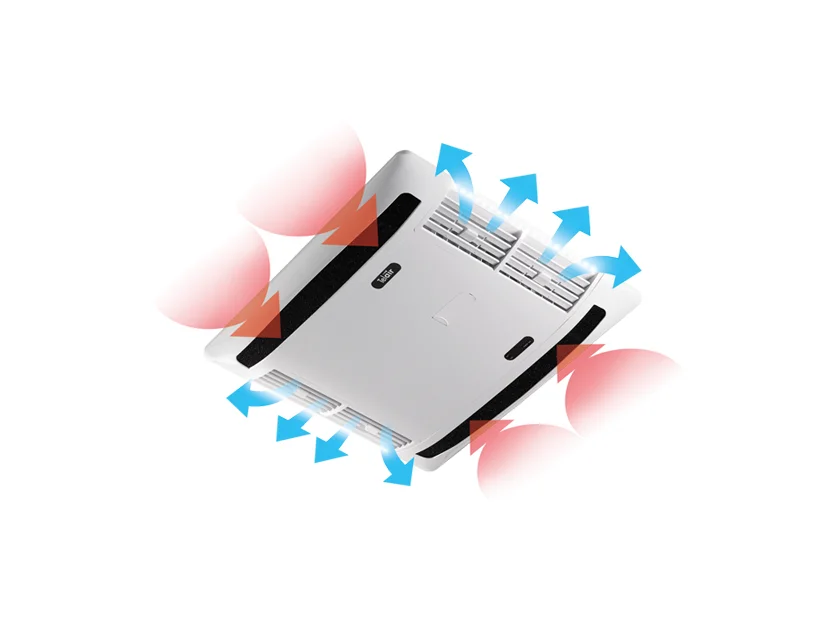 - Gestion entièrement automatisée (Mode AUTO) : Activez la fonction AUTO depuis la télécommande sans fil, et laissez l'appareil travailler. Il sélectionne la meilleure vitesse de ventilation (parmi 3 options) et bascule seul entre le chaud et le froid pour maintenir la température de consigne.