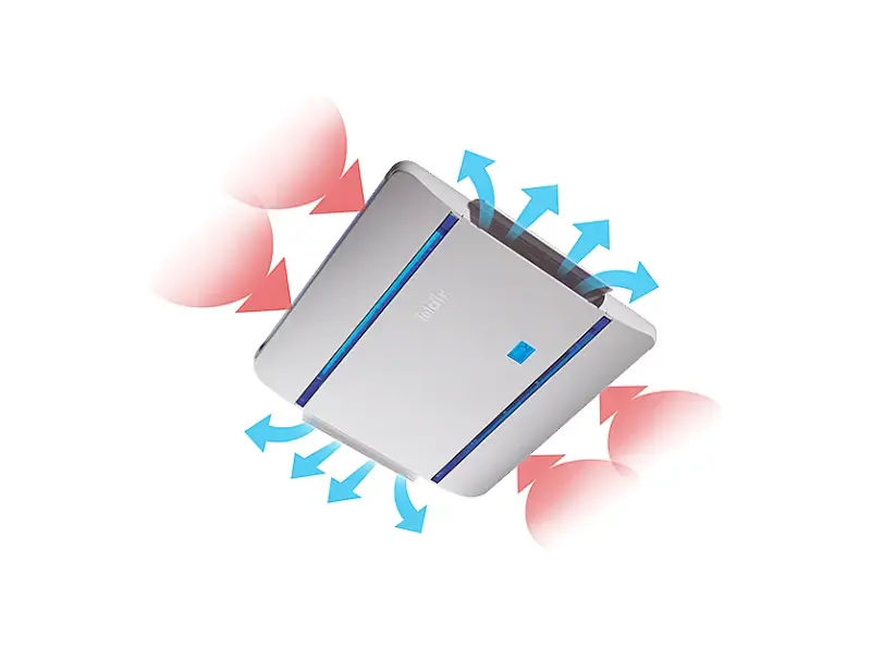 - Ventilation sur mesure : Le diffuseur intérieur blanc est équipé d'ailettes directionnelles et propose 3 vitesses de ventilation pour une répartition homogène de l'air (débit de 300 m3/h).