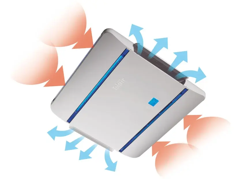 Diffuseur intérieur ultra-plat de 41 mm : avec seulement 4,2 cm de hauteur, il s'intègre discrètement au plafond sans empiéter sur le volume habitable.