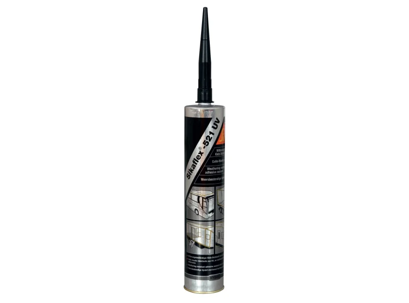 L’étanchéité (Sikaflex 291) : Souple et de grande résistance, il permet de traiter avec fiabilité tous les points particuliers, tant à l’intérieur qu’à l’extérieur. C'est le produit indispensable pour la pose de lanterneaux, d'aérateurs ou de panneaux solaires sur un camping-car, car il absorbe les mouvements de carrosserie sans jamais craqueler.