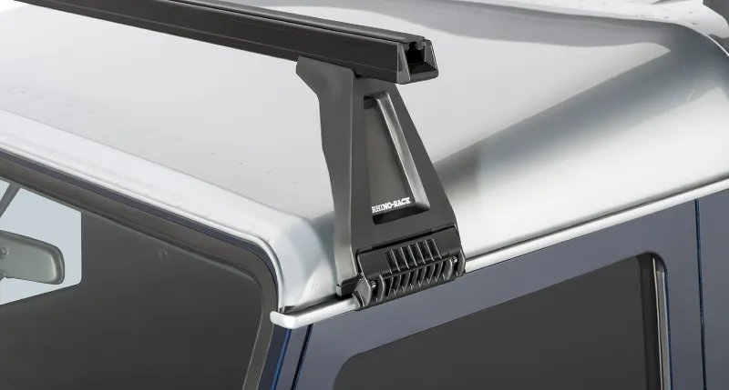 Le montage sur gouttière est reconnu pour sa fiabilité mécanique. La série RL Heavy Duty utilise des pieds de fixation robustes qui s'ancrent solidement sur les rebords de votre cabine, offrant une base stable pour vos barres de toit. C'est la solution privilégiée pour ceux qui recherchent un système de portage haute résistance sans compromis.