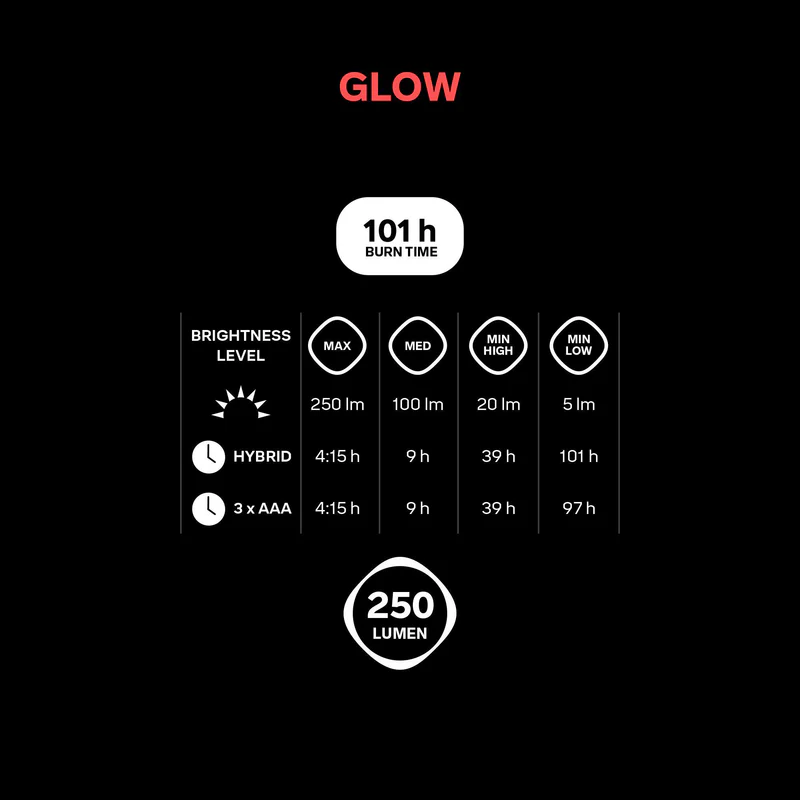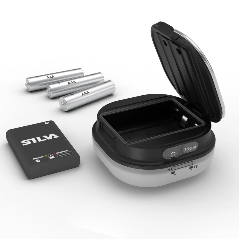 La Glow fonctionne avec des piles AAA (non fournies) ou la batterie hybride rechargeable Silva (non fournie), pour une flexibilité totale.