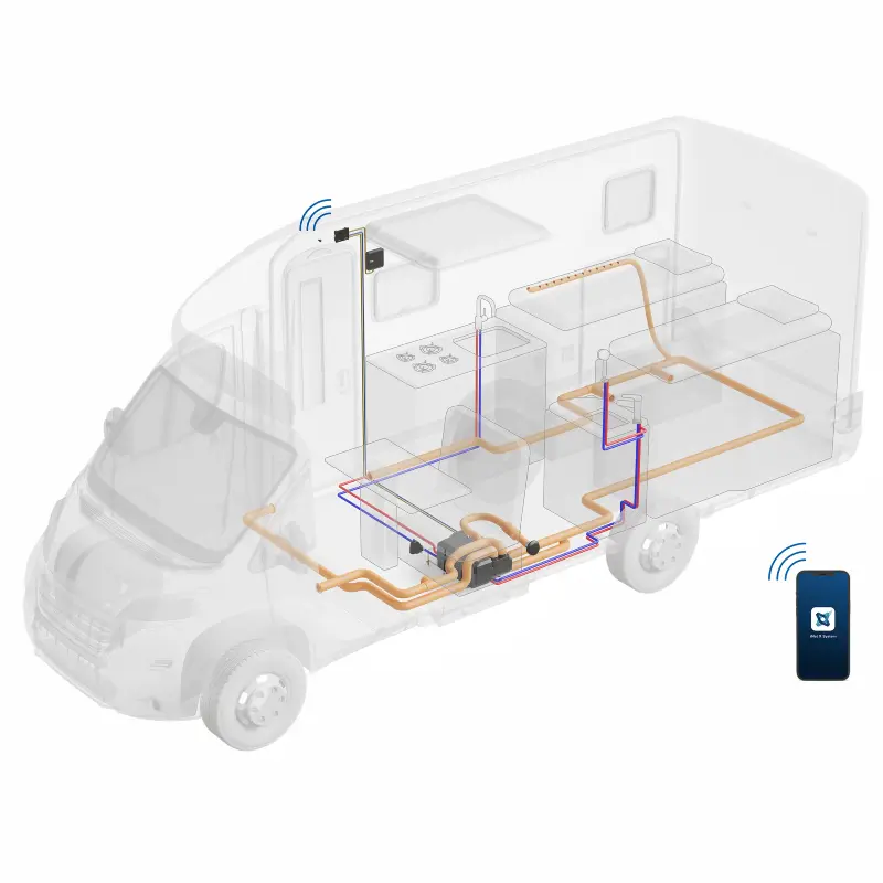 Piloter le confort de votre véhicule n'a jamais été aussi simple. Le CombiNeo est entièrement compatible avec le Truma iNet X Panel et l'application mobile dédiée. D'un simple geste sur votre smartphone, vous pouvez régler la température de l'habitacle, vérifier l'état du chauffe-eau ou programmer votre chauffage avant de rentrer de balade.